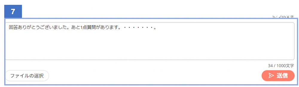 7:回答に対して続けて問い合わせや発言をする場合は、ここに入力します。